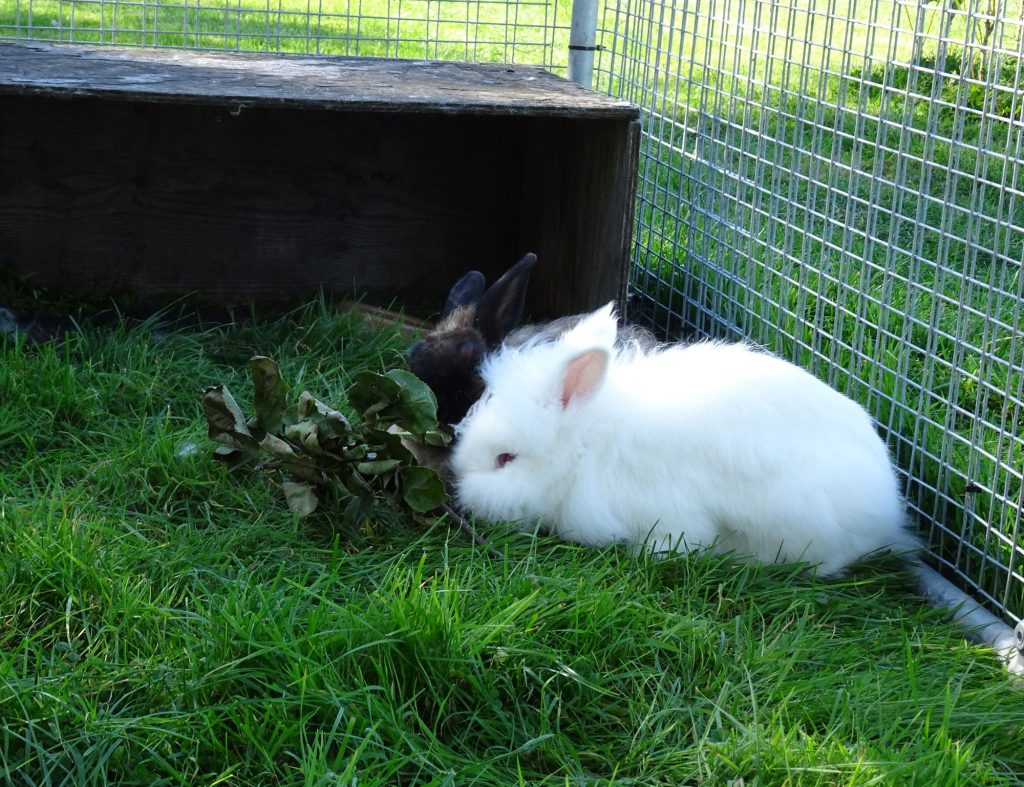The disadvantage of not having direct access back to the shed like the other bunnies means they have to be carried.