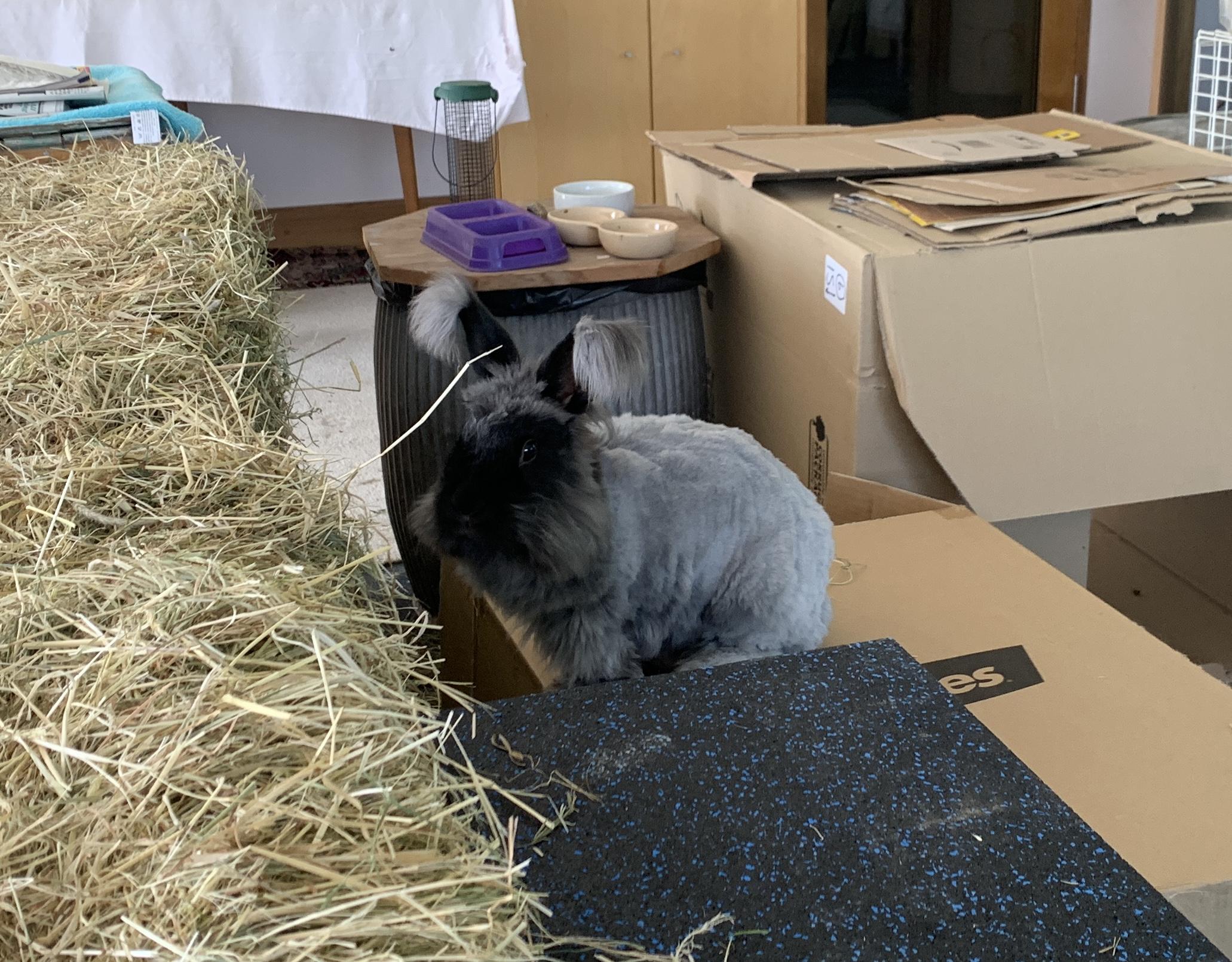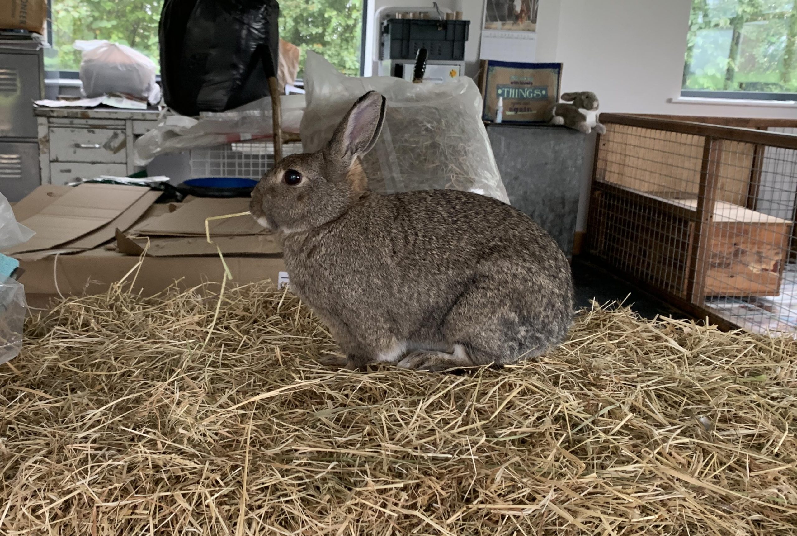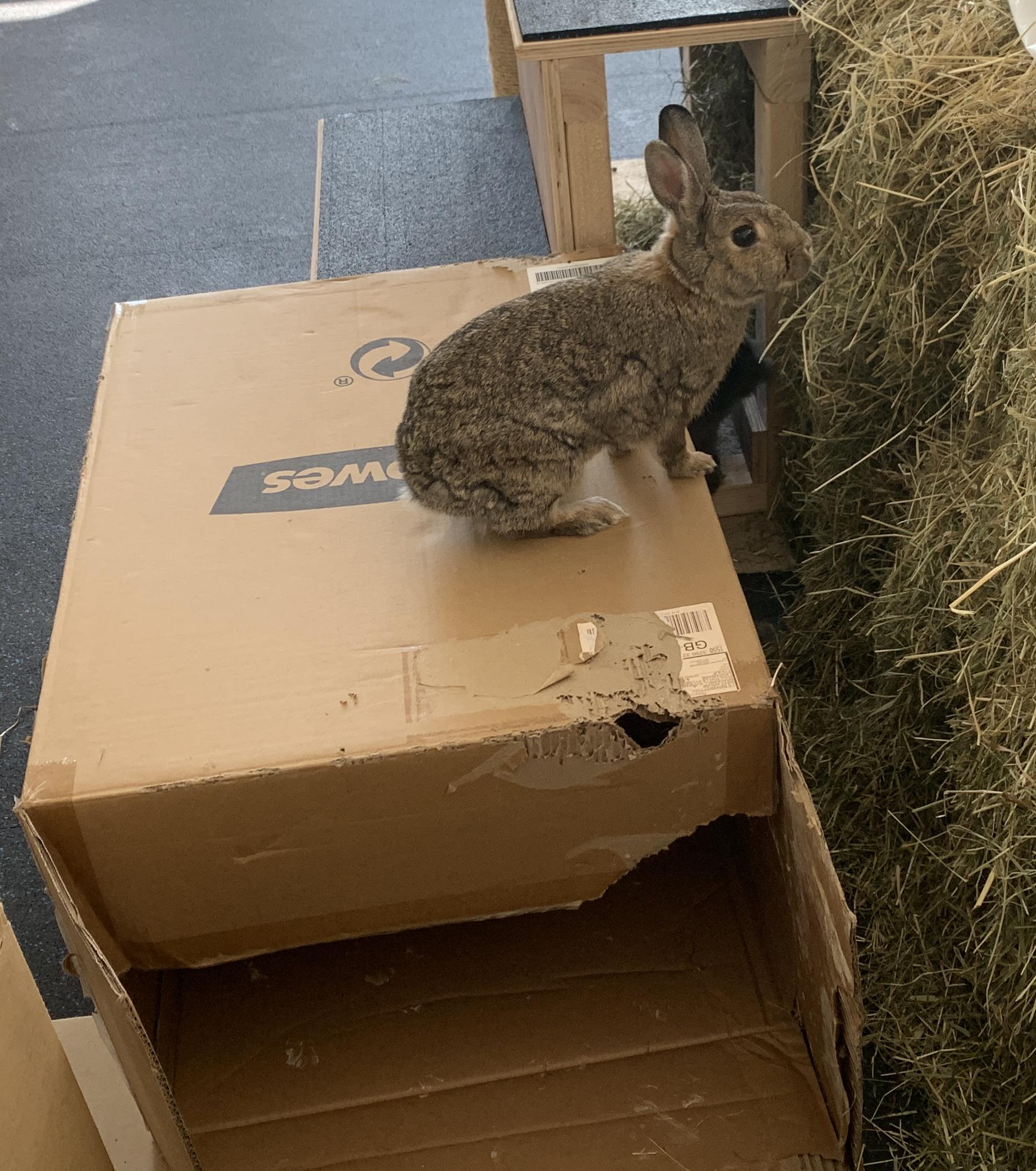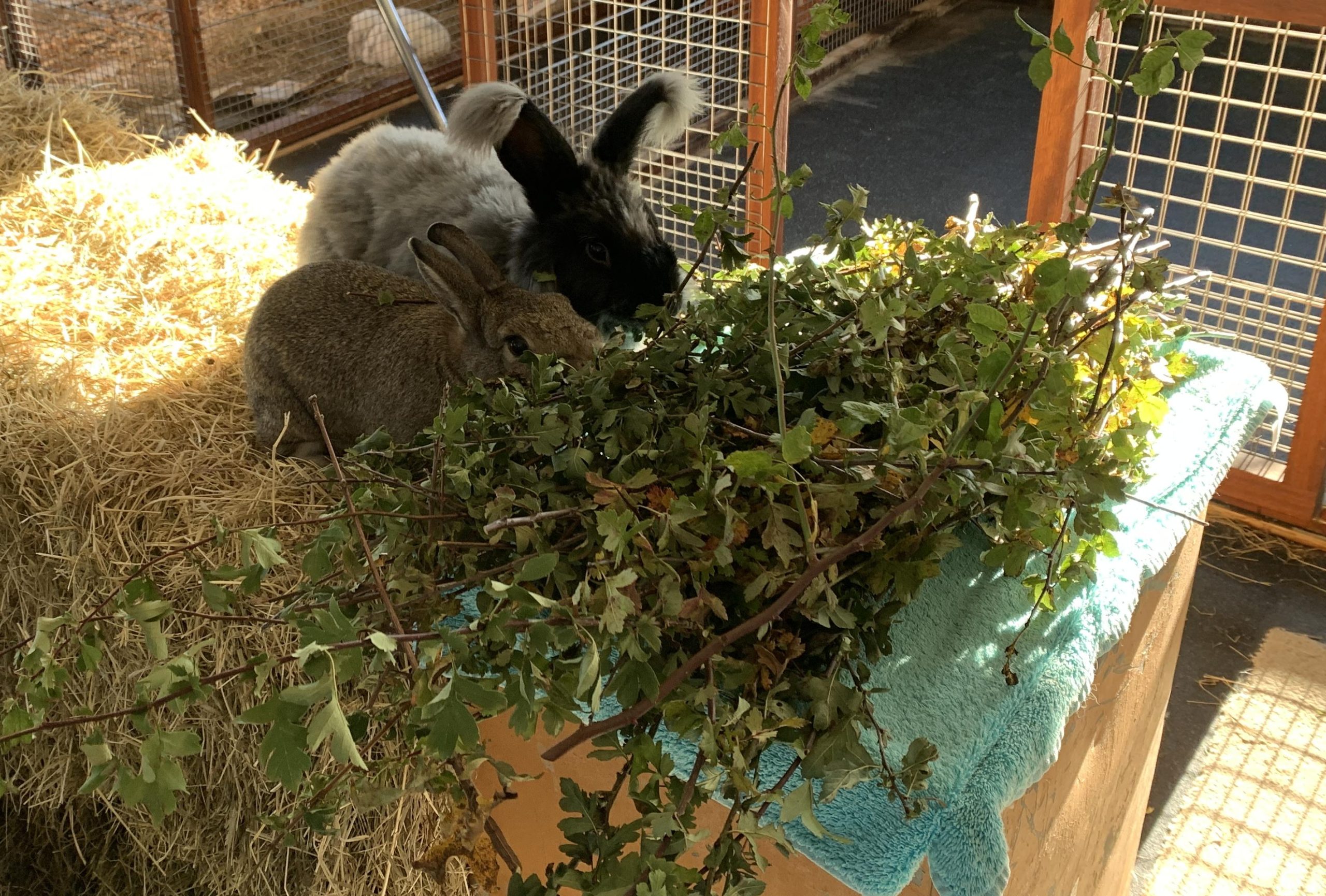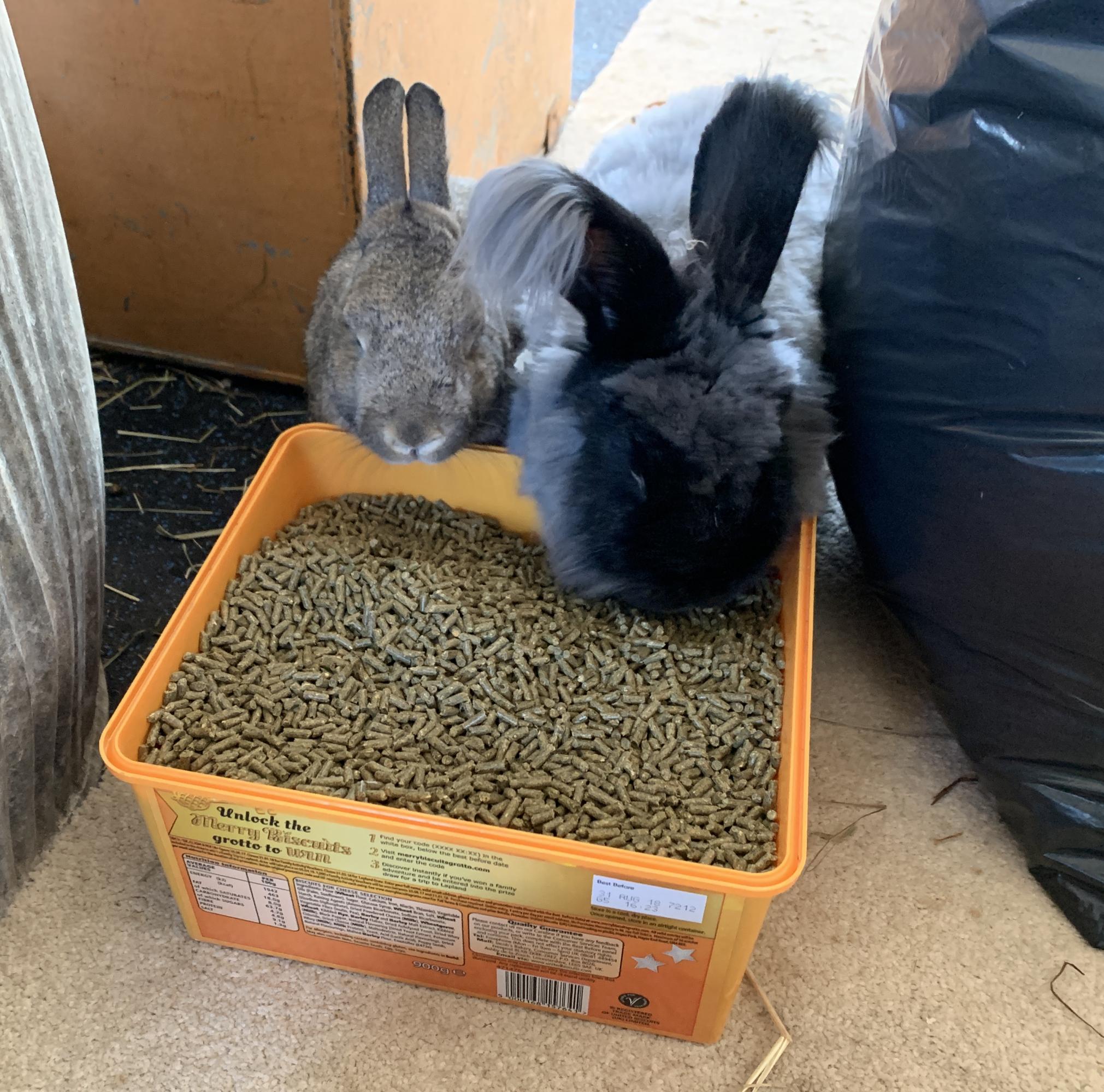 It was Thumper & Katie’s turn to have a day playing around the bunny shed. They always keep a beady eye on me just in case I happen to be sieving food as in this case. As a treat I let them have a few pellets.